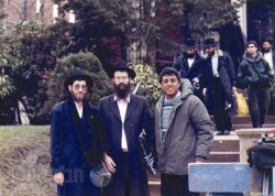 בלימודיו בישיבת תומכי תמימים כפר חב"ד (משמאל) בעת ביקורו של ראש הממשלה יצחק רבין