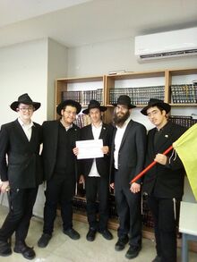 הרב פלדמן עם תלמידים בישיבה בראשון לציון