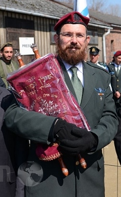 הרב שרגא דהן נושא ספר תורה ב'מצעד החיים' השנתי באושוויץ (תשע"ג)