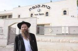 מנהל התלמוד תורה הרב ניצן חלק על רקע בית הכנסת 'היכל דוד' בו השתכן פעם התלמוד תורה
