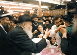 הרבי גוזז שערותיו של אחד מהילדים[1] בעת מעמד חלוקת כוס של ברכה