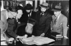 הרבי עם חותנו אדמו"ר הריי"צ בעת קבלת האזרחות, תש"ט
