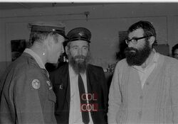 [[קובץ:חסידים עם קסקט.jpeg|250px|שמאל|ממוזער|ר' שולם בצעירותו (מימין)]]
