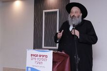 הרב ברנדלר נושא דברים באירוע סיום השנה בחיידר ליובאוויטש שאותו ניהל