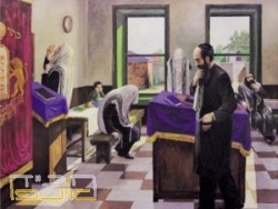 ציור חסידים מתפללים. צייר: זלמן קליינמן