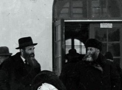 ביקור אדמו"ר הריי"צ בגלובוקע, תמוז תרצ"ד. משמאל, הרב מנחם מנדל קופרשטוך.