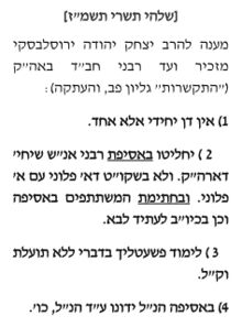 מענה הרבי. החלטות בי"ד באסיפה