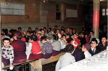 תלמידים בחדר האוכל של הישיבה כשהיה בבעדפורד