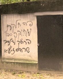 מקום המצבה המשוערת של ר' לייב שרה'ס כפי שהתגלתה בשנים האחרונות (הכיתוב מהשנים האחרונות): פה חלקת מחוקק ספון הרה"ק ר' לייב שרה'ס זיע"א = הרב הקדוש רבי לייב בן שרה זכרו יגן עלינו אמן
