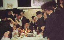 רבי אברהם יששכר אנגלרד מראדזין בעת הבדלה בעריכת השולחן הטהור לכבוד ההילולא של גיסו הרה"ק רבי שמואל שלמה ליינער מראדזין - כ"ט אייר תשנ"ו - בביהמ"ד המרכזי של חסידי ראדזין בבני ברק