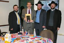 ר' אברמק'ה (מימין) יחד עם השליח הרב חזקי וולף והעסקן החב"די הרב מענדי אייזנבך במסיבת חנוכה עם נציג מושל מדינת ניו יורק תשס"ט (Collive)
