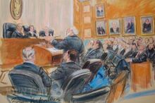 איור המתאר את הדיונים בבית המשפט הפדרלי בארצות הברית