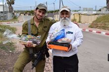 הרב גרשום אוחנה עם חייל, בפעילות פורים