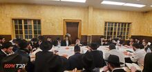 הרבי בתפילה במקומו הקבוע בפינת הזאל הקטן