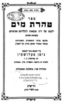 הספר טהרת מים הוא ילקוט הכולל את כל דינים וההלכות בענייני מקווה. יצא לאור בהוצאת קה"ת.