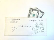 מנהל הקופה הרב שמשון סטאק עובר לפני הרבי בחלוקת דולרים כאשר הרבי מבטא את יחסו המיוחד לקופה באמצעות תרומה לקופה ב-2 הידיים
