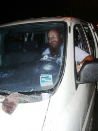 הרב קירשנזפט ברכבו לאחר הפיגוע