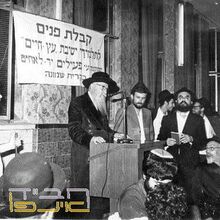 הרב יעקב לנדא, רבה של בני ברק נואם בכנס פעילים של "יד לאחים" בקריית שמונה