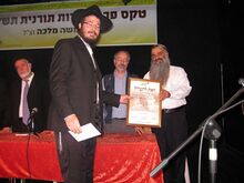 הרב יואב למברג מקבל תעודת זכייה על חיבורו 'הפסק בתפילה' (תש"ע)