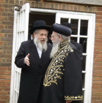 הראשל"צ הרב אליהו בקשי דורון, בביקור בהישיבה. לידו עומד הרב יצחק מאיר הרץ.