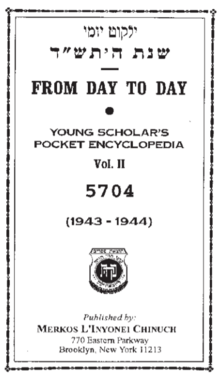From Day to Day הוא יומן תורני לתלמידים, הכולל מידע אנציקלופדי לגילאים הצעירים. חוברת זו הינה הקובץ הראשון שנערך על ידי הרבי עצמו, וזכה לחביבות גדולה על ידי אדמו"ר הריי"צ שהתבטא כי חובה להפיץ אותו במוסדות החינוך היהודיים.