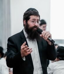 הרב ניסלביץ מוסר שיעור בישיבה ליום אחד