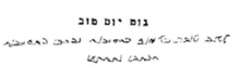פאקסמיליא בכתב ידו של אדמו"ר הריי"צ בחתימת לוח היום יום: לשנה טובה בלימוד החסידות ובדרכי החסידות תכתבו ותחתמו, האיחול המקובל בפי רבותינו נשיאינו לראש השנה לחסידות י"ט כסלו