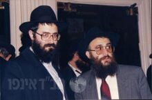 הרב ברענן (מימין) בתצלום מכינוס השלוחים שנערך בתחילת שנות הנו"נים, לצד השליח הרב יוסף צבי קרליבך (ניו ג'רזי)