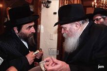 באחד השנים בל"ג בעומר, הציב בחצר ביתו מסך ובו שידור חי מהתוועדות של הרבי.
