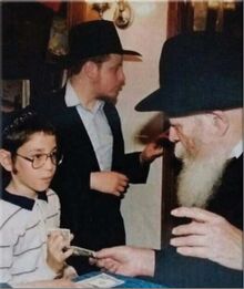 הפעם הראשונה שהיה אצל הרבי הייתה בתשרי תש"נ, לרגל בר המצווה של אחיו רפאל. בין הדולרים שקיבל באותו חודש, היה ביחידות בכ"ה ניסן בעת יחידות כללית לבחורים בגילאי בר מצווה, והיה אז רק בן 11.5.