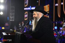 הרב אסמן נואם במעמד הגדול שאורגן על ידי מטה משיח בארץ הקודש לרגל י"א ניסן 120 שנה (תשפ"ב) שנערך באצטדיון בלומפילד במהלך ימי המלחמה באוקראינה