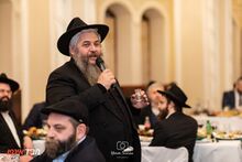 הרב אסמן נואם בהתוועדות לקהילה שלו בבית הכנסת ברודצקי שבאוקראינה