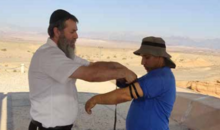 הרב בלוי מניח ליהודי תפילין סמוך לנחל הערבה