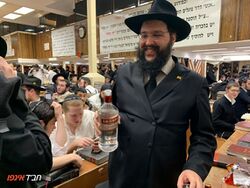 הרב ישראל גרנובטר עם אחד מילדיו, בבית משיח 770, פורים קטן תשפ"ב
