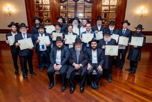 הרב וילהלם בתמונה משותפת עם בוגרי מכון הסמיכה שבראשותו
