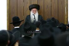 הרב אורטנר נושא דברים בכינוס תורה ב-770 בכפר חב"ד.