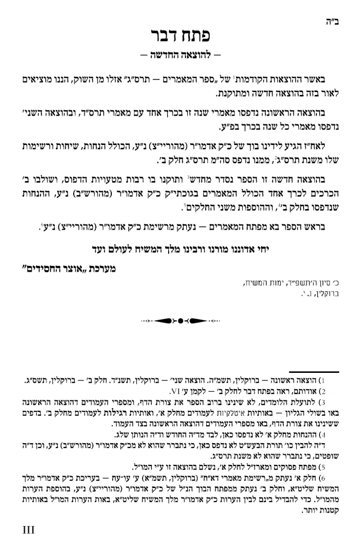 - ↑ מתוך ה"פתח דבר" למהדורה החדשה - ספר המאמרים תרס"ג (ברוקלין, תשפ"ד).