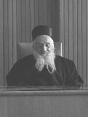 הרב עובדיה הדאיה בישיבת בית הדין הגדול לערעורים בשנת תשי"ט.
