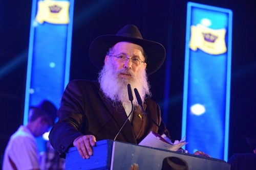 נראים הרבנים החסידים: זושא ווילימובסקי, משה מרדכי ארנשטיין, יוסף יצחק ווילשאנסקי (נואם), לוי ביסטריצקי, אריה לייב קפלן, בצלאל קופצ'יק