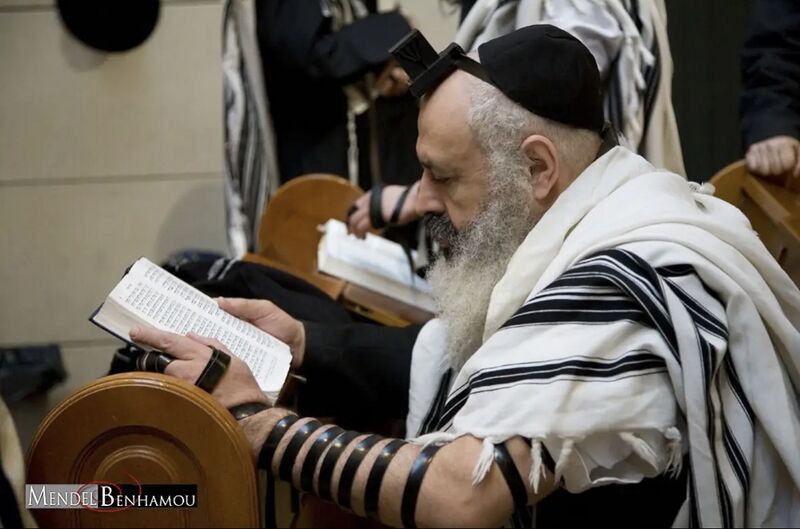 ר׳ ברוך שלום אואקי מתפלל בבית הכנסת ׳בית חיה מושקא בפריז.