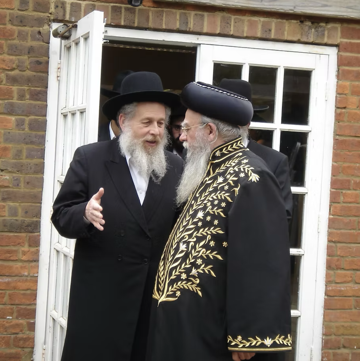 הרב בקשי-דורון עם הרב יצחק מאיר הרץ בביקור בישיבת ליובאוויטש לונדון
