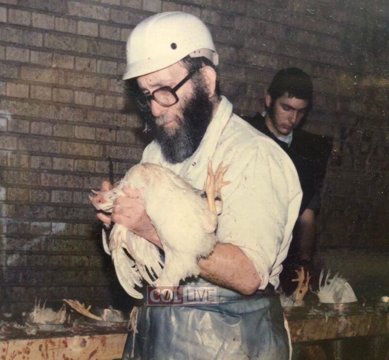 הרב לייבל טורק שוחט עופות בכפרות בהשכונה בשנות ה״מ״ם״