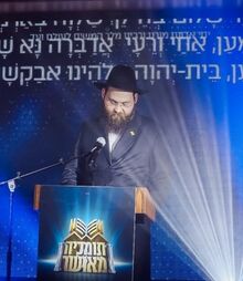 הרב זלמנוב קורא את פרקו של הרבי בערב שותפות לאיגוד תלמידי הקבוצה תשפ"ג