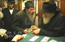 ר' יהושע קליינבערג עובר לפני הרבי בחלוקת דולרים, כ"ו חשוון תשנ"ב