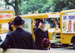 בשנת תשמ"ח 38 טנקים ארווי, בכבוד, ולא רק משאיות שלא מכובדות... ובאמת מאותה שנה והלאה היה מאוד מכובד...בשנת 1974 החלה הופעה חדשה להופיע ברחובות מנהטן. אפילו בתוך המהומה ההיא של קהל וקול רעש, הרכב המוזר הזה משך תשומת לב. זה היה טנדר סטנדרטי מזן "U-Haul" או "Ryder". הדלת האחורית שלה הייתה מגולגלת, והראתה מטען של שולחן עץ אחד גדול, שני ספסלי עץ ותריסר צעירים עם זקן וכובעים שחורים. מרמקול שהודבק לגג שלו יצא שילוב של שירים חסידיים המושמעים בווליום גבוה - כלומר גבוה מספיק כדי להשמיע את עצמו מעל לרעש של פינת רחוב במנהטן. פוסטרים גדולים שהודבקו לדפנות הטנדר הנעים הכריזו: "מיכל מצווה", "תפילין על הסיפון" ו"מצוות במקום לאנשים בדרכים".