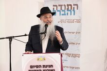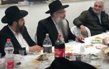 הרב שי סוקניק (באמצע) מדבר בהתוועדות חסידית