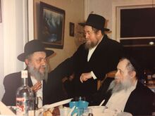 הרב שלום (עומד), עם אחיו הרב משה והרב מענדל