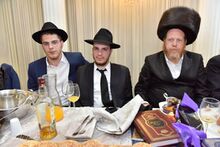 שניאור ובר (במרכז) בסעודת חתונתו (כפר חב"ד תשע"ח)