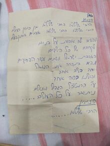 צילום הדף המקורי שעליו כתב אבשלום קיל את מילות הניגון 'הרבי שליט"א'